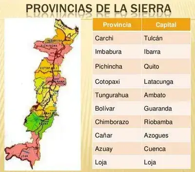 Provincias y capitales de la Región Sierra. A continuación las provincias de la región sierra del Ecuador y sus capitales. Si tienes alguna inquietud recuerda contactarnos a través de nuestras redes sociales, o regístrate y déjanos un comentario en esta página. También puedes participar en el WhatsApp. Si usas Telegram ingresa al siguiente enlace.